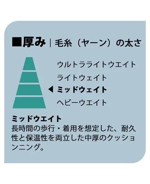 ・「ミッドウェイト」長時間の歩行・着用を想定した中厚の靴下です。より自然な保温性と耐久性を備えた、ハイカーの必需品です。