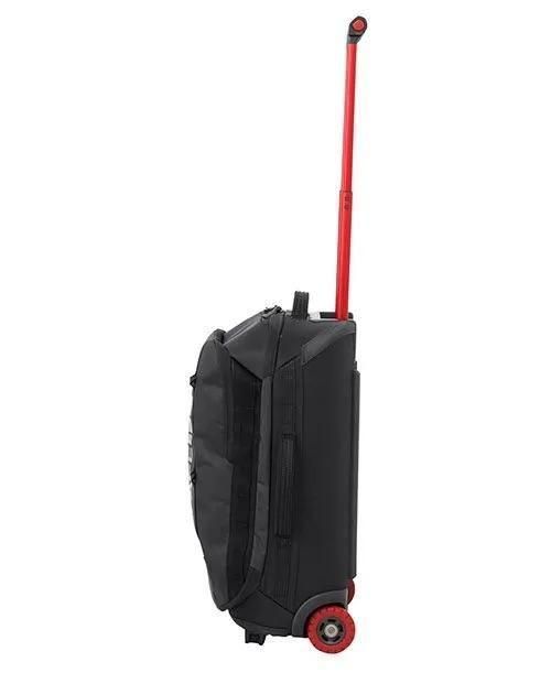 汚れや水濡れに強いタフな1000デニールポリエステルTPEファブリックラミネート素材を使用したホイール付きのキャリーバッグです。商品名の22インチはバッグの高さを表しており、容量は40L。