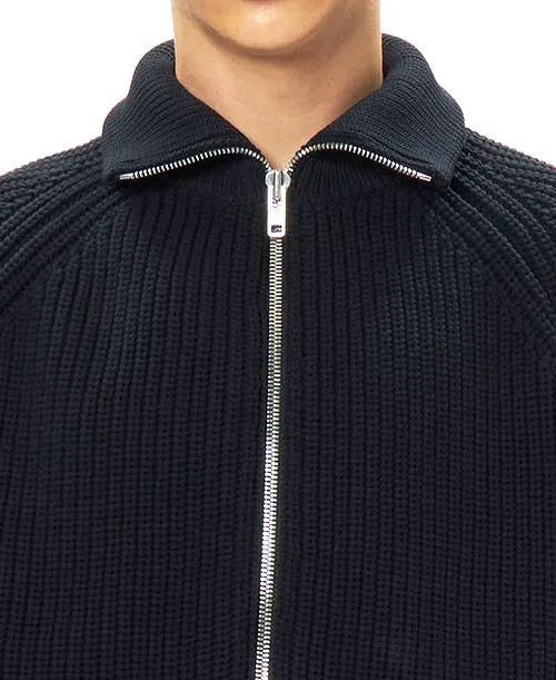 天然繊維と比べて軽量でやわらかな、ローゲージニットのハーフジップセーター。